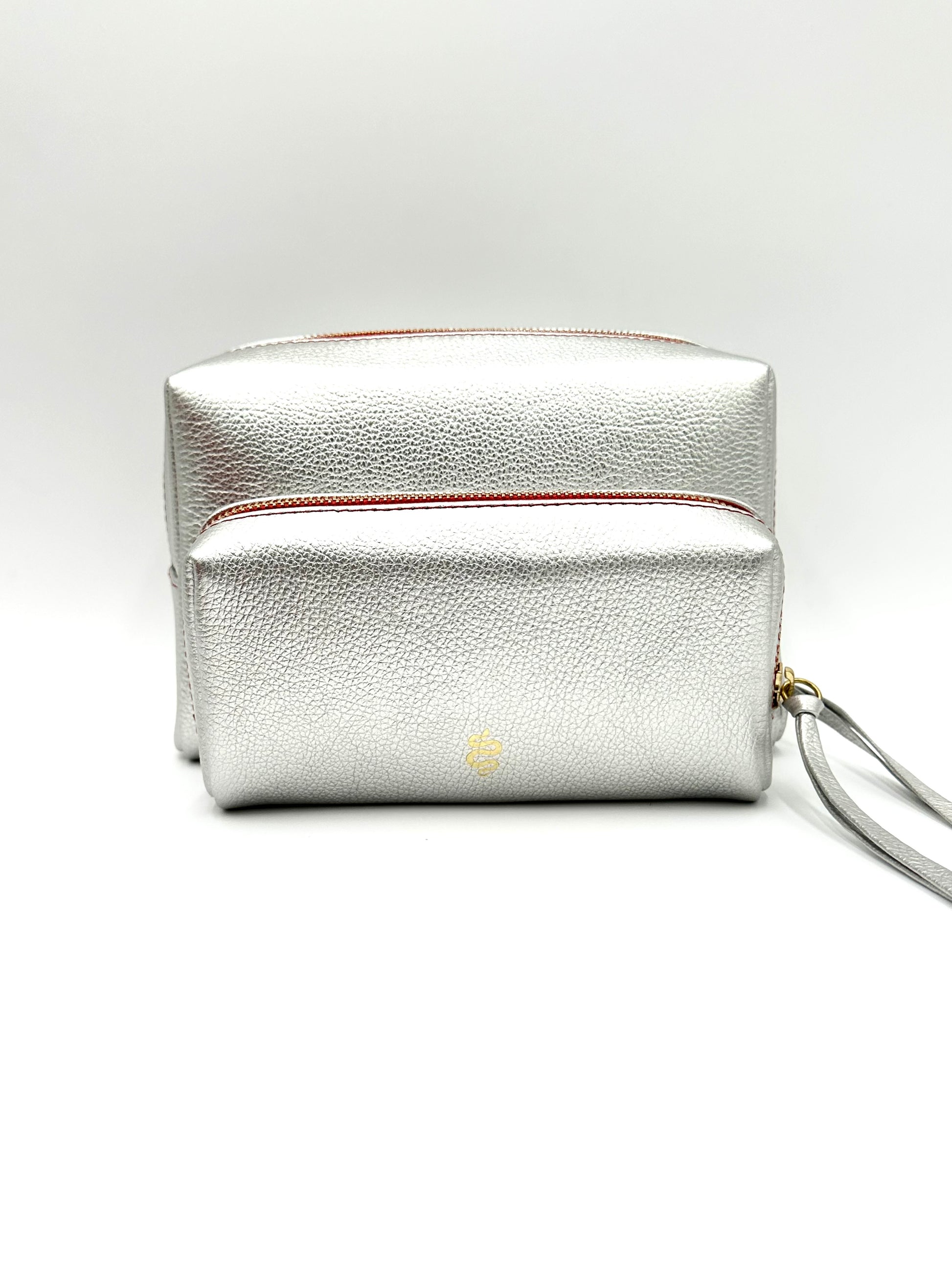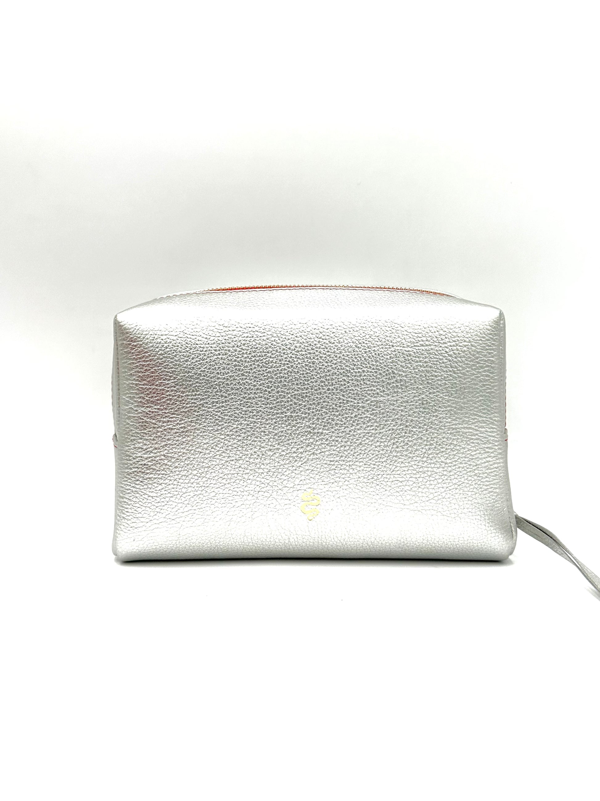 Large Accessories Bag in Silver with a Lipstick Red Interior